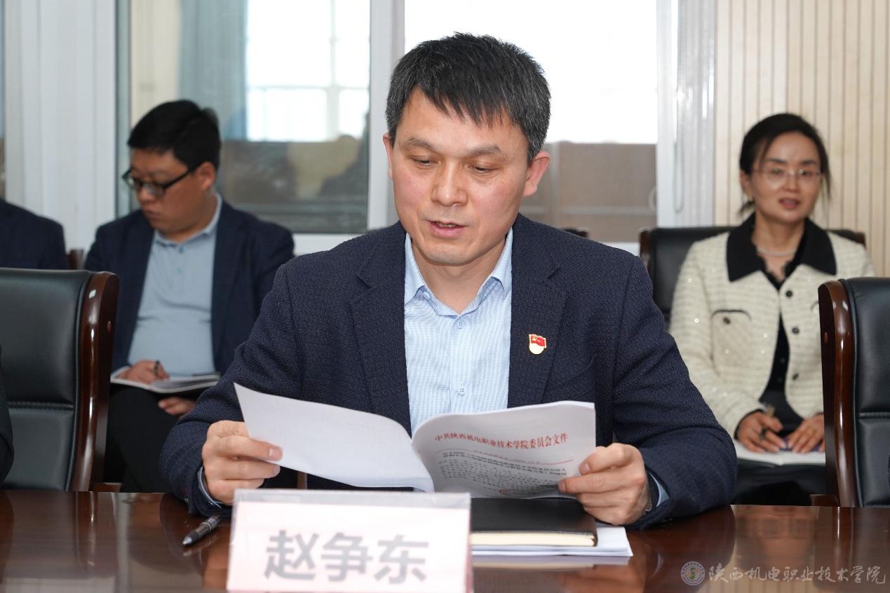 党委委员、院长助理、党委组织部部长赵争东解读《中共陕西机电职业技术学院委员会关于深入贯彻中央八项规定精神学习教育的实施方案》。
