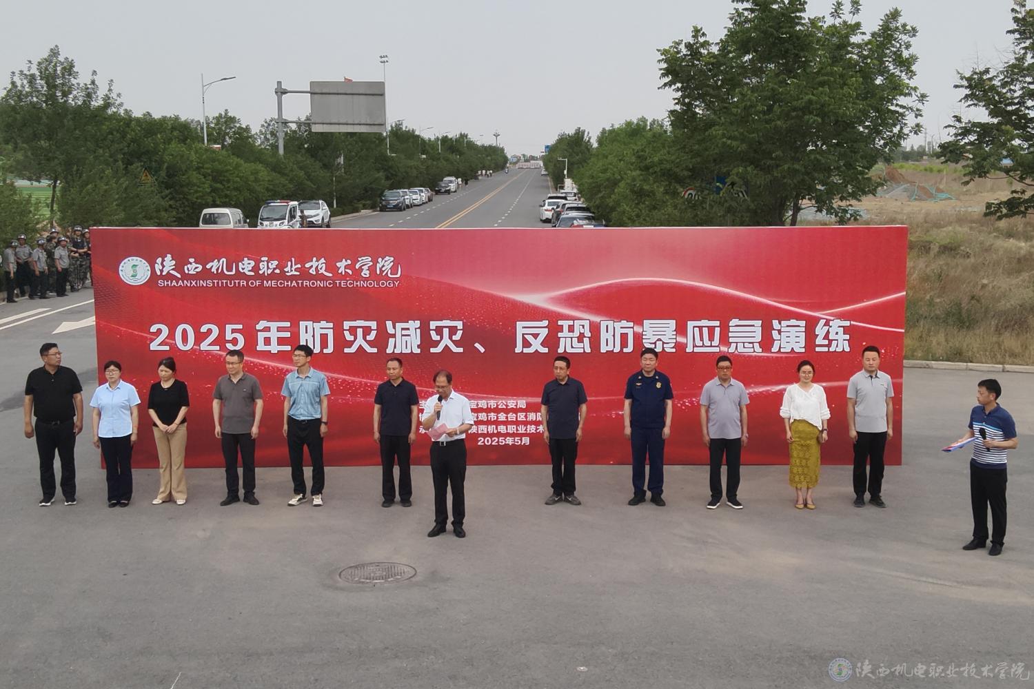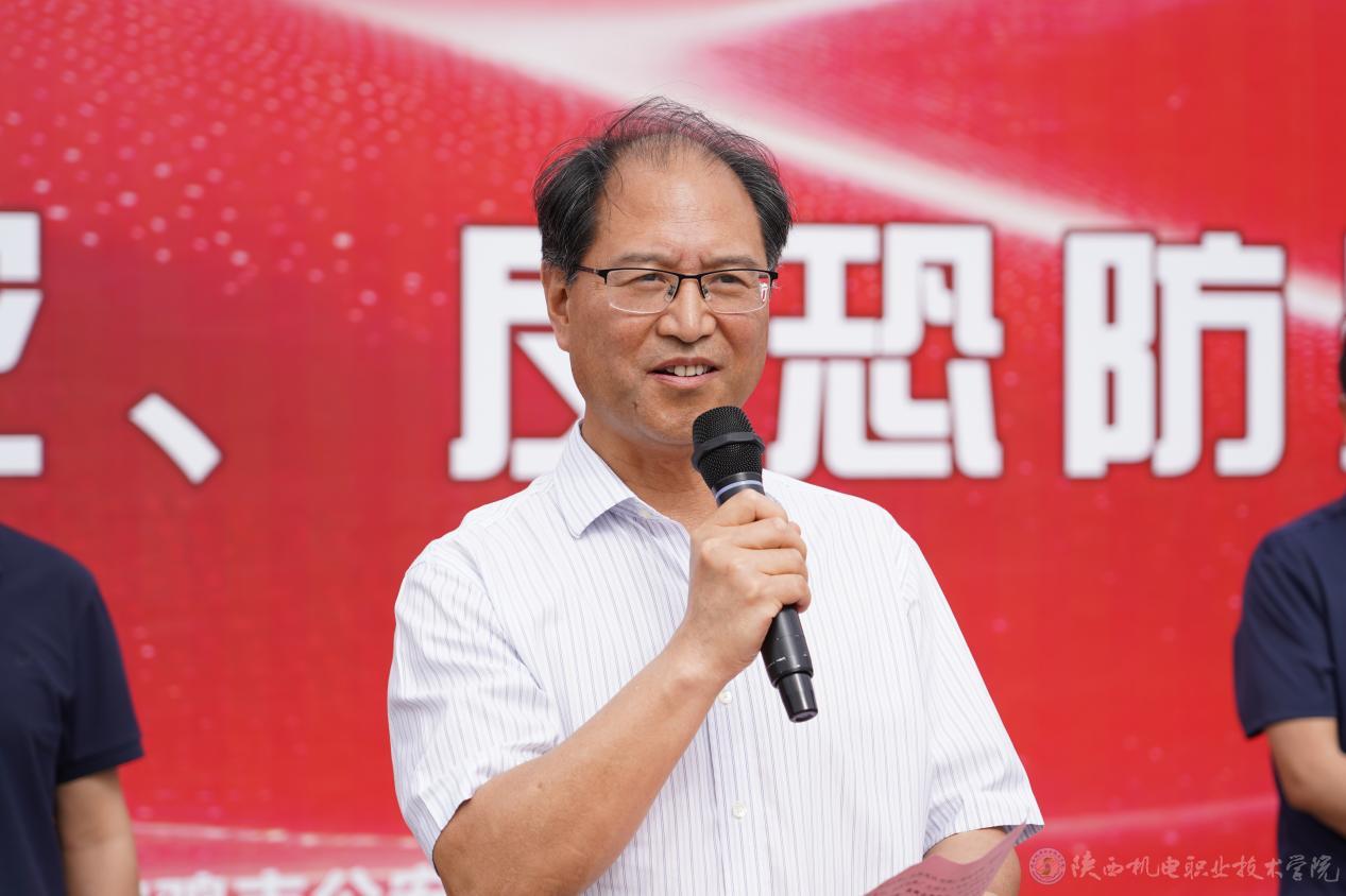 为全面强化我校安全防范体系,营造更加稳固的校园安全环境,切实提升全体师生的应急处置与自救互救能力,5月22日,学校紧扣“人人讲安全、个个会应急——排查身边灾害隐患”主题,精心组织开展2025年防灾减灾反恐防暴应急演练活动。活动特邀宝鸡市公安局反恐支队支队长邓文涛,金台分局党委委员王志卫,金台消防大队大队长黄兴利及相关领导莅临现场进行指导。学校党委书记伊逊智,党委委员、党委宣传部部长李明,纪律检查室主任王芙蓉参加活动。活动由保卫处综合管理科科长张小辉主持。