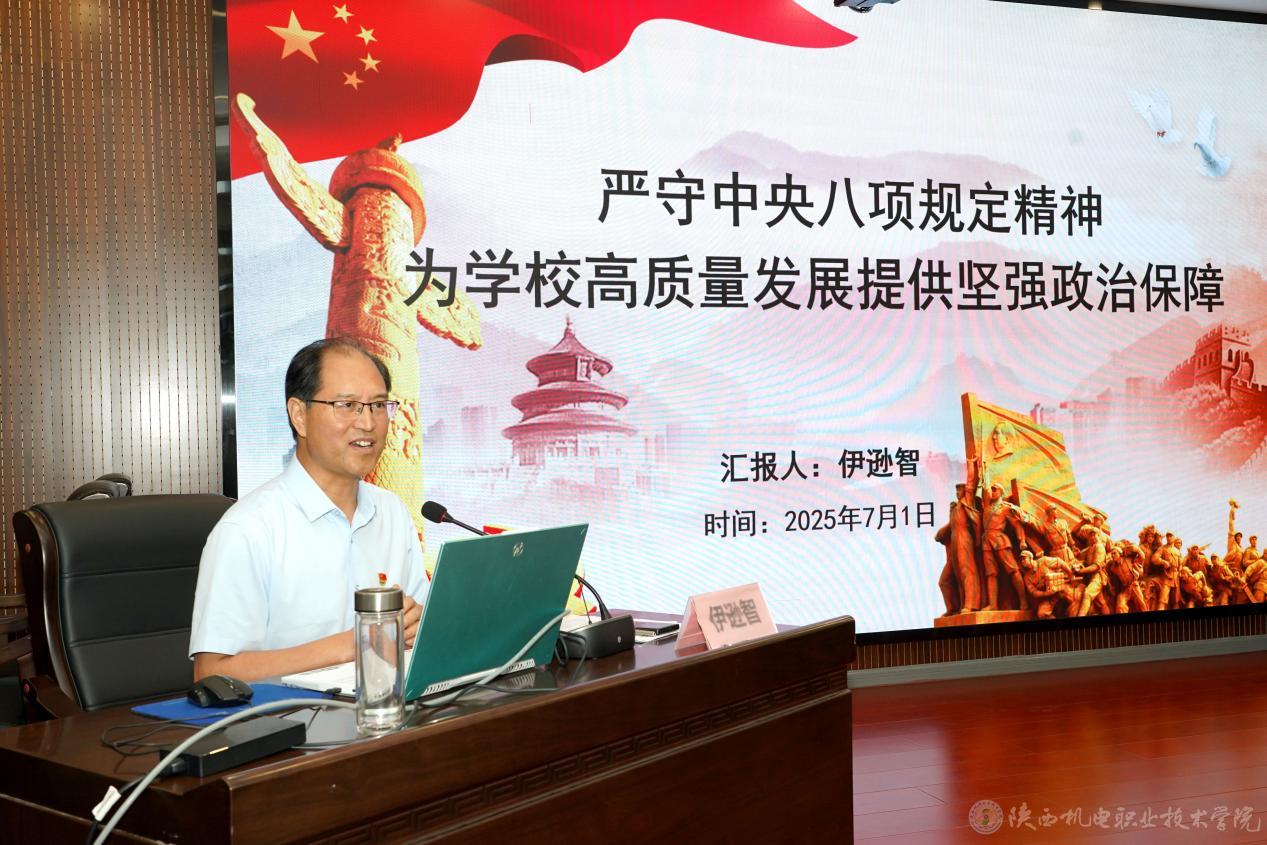 陕西机电职业技术学院党委书记伊逊智讲授深入贯彻中央八项规定精神学习教育专题党课